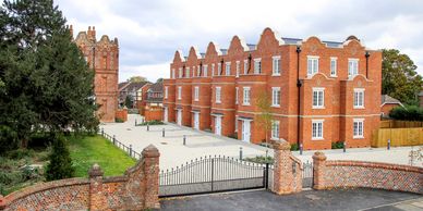 This site comprises a listed building set within its own grounds. The development has seen the original building converted into seven 2-bedroomed apartments; three at ground floor level and two on each of the upper floors, with a new terrace of five, three bedroom town houses taking references from the existing building.